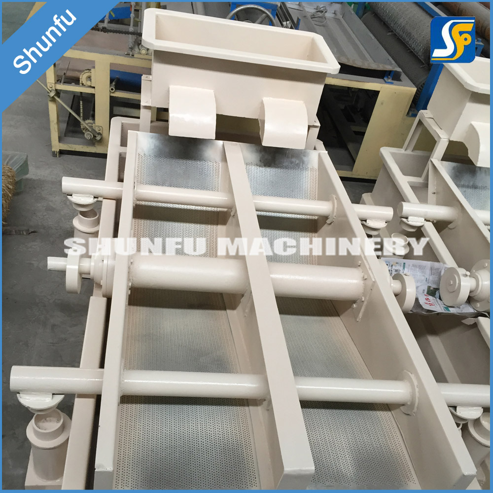 自洗式振框平篩的工作原理是:電動機帶動主軸使其進行高速回轉(zhuǎn),此時在主軸兩端的偏重輪產(chǎn)生很大的離心力,使懸吊在彈簧上的篩框作橢圓軌跡的振動。篩板表面鉆有Φ2~Φ12mm的篩孔或?qū)?.5~0.75mm的篩縫,以適應(yīng)不同漿料的篩選要求。在篩框底部聯(lián)接一個一定高度的氣封室,電機開始運轉(zhuǎn)后調(diào)節(jié)漿槽漿位至氣封室底部以上,使篩板位于漿槽的漿料液面以上,此時,當篩體作上下振動時,密封在氣封室內(nèi)的空氣會產(chǎn)生壓力脈動。當篩板向上運動時漿料通過篩孔浸入漿槽,這樣就使篩板進行連續(xù)的自清洗而不使篩板堵塞,既保持了篩板清潔通暢,又提高了篩選質(zhì)量和生產(chǎn)能力。